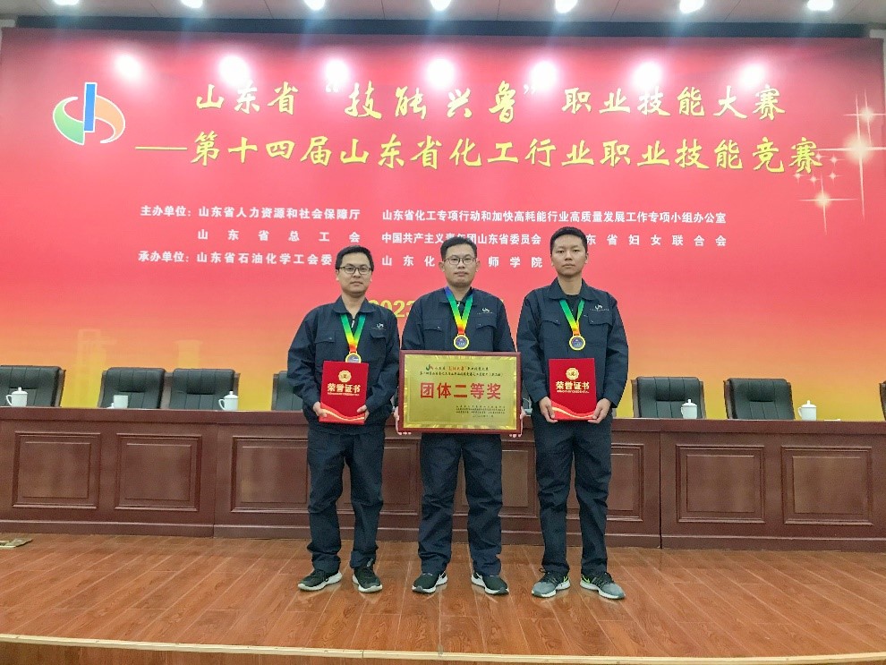 2023年11月6日,山東省“技能興魯”職業(yè)技能大賽——第十四屆山東省化工行業(yè)職業(yè)技能競賽圓滿閉幕,聯(lián)泓新材料代表隊(duì)斬獲佳績。在儀器儀表維修工(職工組)競賽中,公司儀表部郭峰、郭洪汝分別獲得個(gè)人一等獎(jiǎng),兩人共同獲得該項(xiàng)目團(tuán)體一等獎(jiǎng);在化工總控工(職工組)競賽中,公司生產(chǎn)管理中心MTO裝置高祖仿、徐同仲分別獲得個(gè)人二等獎(jiǎng),趙聯(lián)路獲得個(gè)人三等獎(jiǎng),三人共同獲得該項(xiàng)目團(tuán)體二等獎(jiǎng)。聯(lián)泓新材料獲優(yōu)秀組織獎(jiǎng)。